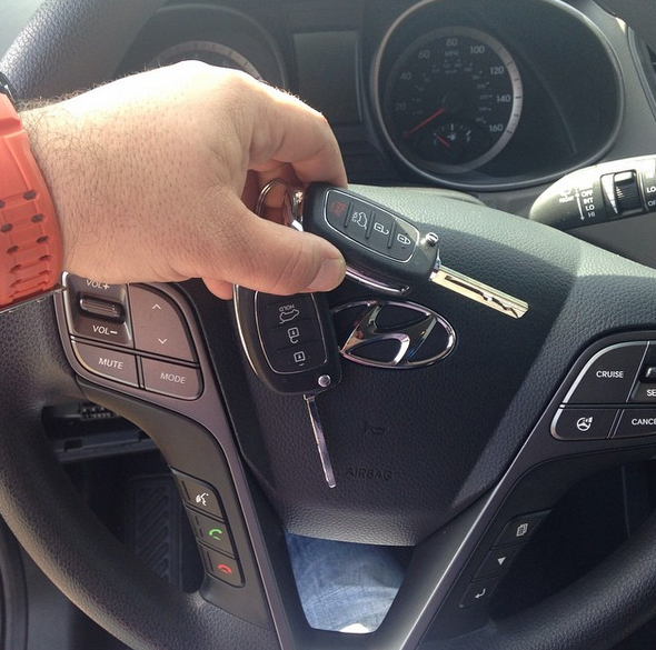 Here is another one. Two new switch blade high security key remote combo cut and programmed on site for a 2014 Hyundai Santa Fe yes we keep these keys in stock.