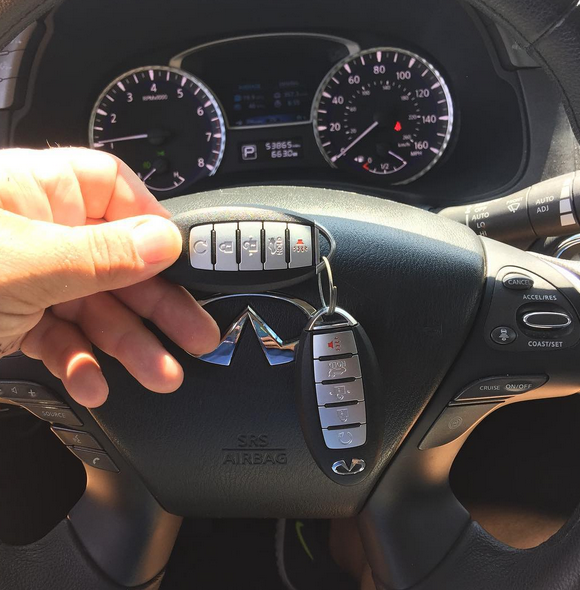 Our price are so low that our customers omers usually end up getting two keys instead of one. Here is a PROX 5 button with auto start on a 2014 Infiniti JX35 push to start vehicles. Customer made a quick call to us after the dealership told them to call a