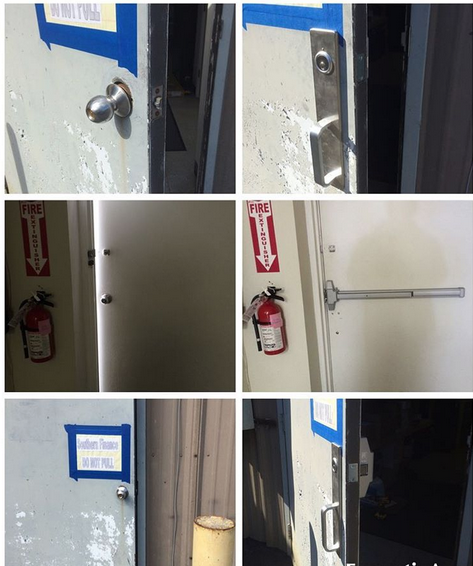 This was a basic rear entry door to a gun shop that basically with any pry bar anyone could get into. By the time we were finished they now have a heavy duty latch push bar that you will not be able to pry open from the outside with a Falcon heavy duty do
