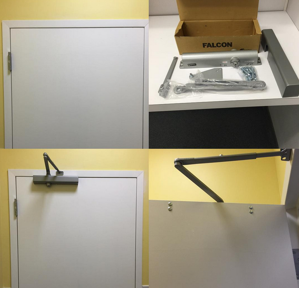Another CLOSED case. A quick install on Falcon door closer. Marked, hung and Installed flawlessly for years of solid service. This little door closer takes a licking and keeps on ticking.