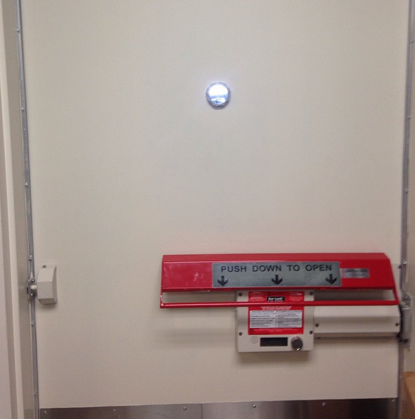 Finished product. The SUR-LOCK device is installed and electronics hooked up with a IC core set up to one of our accounts corporate cores. Along with the install of the device we also installed hinge override protection from the inside along with a panora